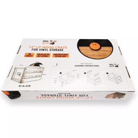 Vinyl Buddy  - Lp Wood Crate (Holds 50 Lps)